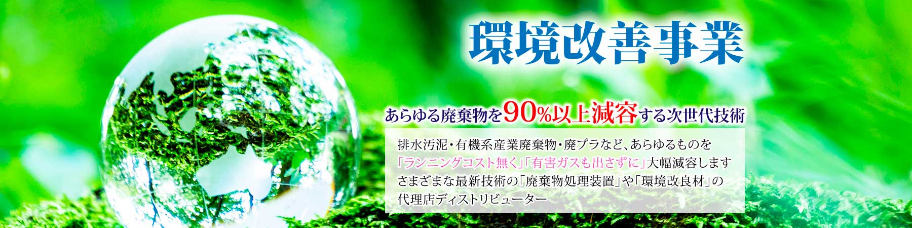 特殊な酵素を使って農業残渣からバイオエタノールを作る新技術や排水処理の微生物分解を促進するマイクロファインバブル技術などの環境改善技術の商材や設備の供給を行っています。