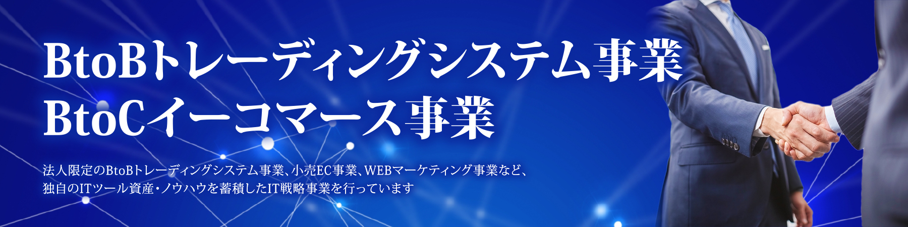 商社事業の強みを活かし、「①事業者会員限定の卸・委託のBtoBトレーディングシステム事業(goosa)」、「②オーダーメイドや素材・カスタム品に強い小売のBtoCネットモール事業(GOOSCA)」、「③健康美容に特化した小売ブランド通販事業(フレスコヘルスケア)」の3本柱を中心に、EC事業を幅広く展開しています。